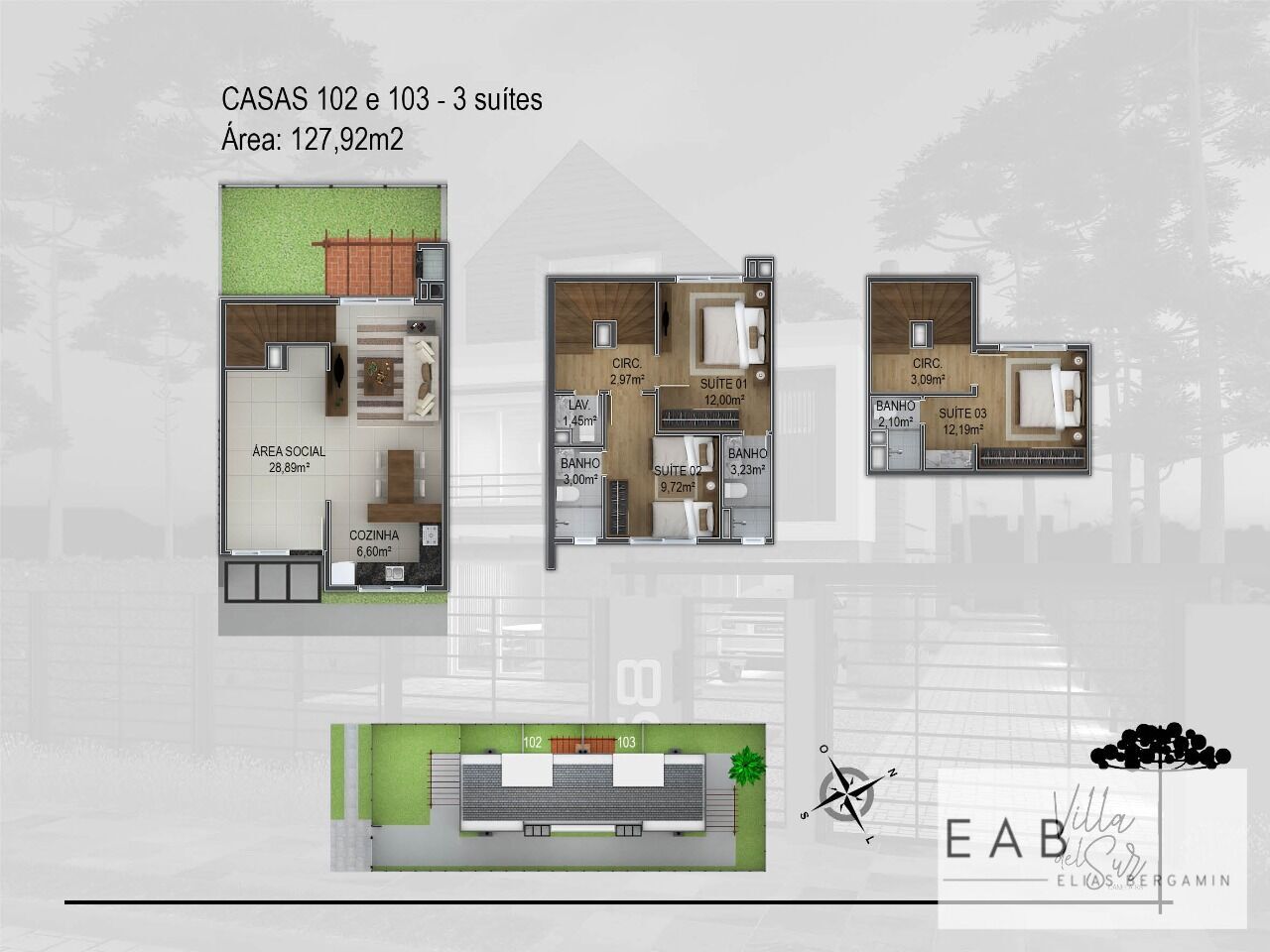 3 Dormitórios, sendo 3 suítesGaragens